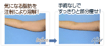 メソセラピーは、脂肪吸引と比べ手術をしなくてよいことからリスクが非常に少なく、安全性は高いといえます。薬については内服薬として厚生省より承認されています。メソセラピーは先進国では既に脂肪溶解注射として承認されており、肥満治療に使用されています。またメソセラピーは、薬剤も体外へ(尿や便で)排泄される為、体内に蓄積されることもありません。