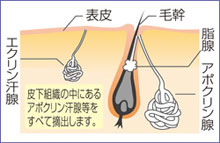 ![]() 何ミリリットル以上、汗をかくから多汗症というものではなく、自覚的な要素の多い病名ということになります。 しかし、緊張しやすい人や太っている人、甲状腺機能の亢進している人などにも多汗症は多く存在します。 ![]() 代表的な症状として、ワキの下から汗が流れたり、ワキの下の黄ばみ、原色のブラウスなどを着た時にできる汗じみが気になるといったものが挙げられます。 汗の量が多いだけで、痛みなどはないため、病気としては認識されにくいですが、多汗症は厚生労働省からも認定されていますので、病気であるということになります。 多汗症は、不安・緊張など精神的なものが大きく関わっているようなので、物心つく頃から、思春期にかけて発症する事が多くあります。 自分が多汗症であると感じている人は汗が出てしまうのではないかと緊張したり、ストレスを感じたりしてしまうと余計に汗をかいてしまったりと悩みを抱えていると思います。 多汗症はストレスや不安、緊張などの精神的なものですとか、食生活や遺伝、肥満、病気、ホルモンバランスの偏りなどが原因といわれています。 特にワキの下は、身体と腕が閉じた状態が多く、汗をかきやすい場所の一つです。 わきがと多汗症は、同一のものではなく、多汗症の人がすべて臭いが強いということではありません。 多汗症とは、手掌多汗症を意味することもあります。 手掌多汗症は、手指末端から多量の発汗をする状態を言います。 原因は不明で、交感神経ブロックが治療法(ボトックス注射)となります。 注射による手掌多汗症の治療![]() 持続期間は約6ケ月ですが、個人差もあります。 1回10万円程度ですので、2〜3回で手術ができる料金になってしまいます。 手術は絶対にイヤだという人だけが、一時的に行う処置ということになります。 ※金額はクリニックによって異なりますので、お問い合わせ下さい。 |